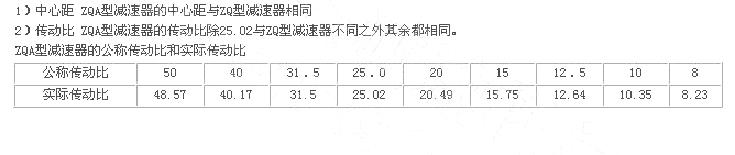 ZQA型減速器是在ZQ型減速器的基礎(chǔ)上改型設(shè)計(jì)的。為了提高齒輪的承載能力,又便于替代ZQ型,即安裝尺寸和外形尺寸、輸入和輸出軸伸不變的情況下,只改變齒輪的材質(zhì)和熱處理方式采用中硬齒面。并將ZQ型減速器的一級(jí)速比23.34改成25.02。