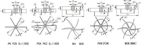 六直葉整體開啟渦輪式PK、六窄葉穩(wěn)定環(huán)開啟渦輪式PZW、六直葉可拆開啟渦輪式PCK、六彎葉開啟渦輪式WK、六直葉穩(wěn)定環(huán)開啟渦輪式PKW、六彎窄葉開啟渦輪式WZK、六窄葉整體開啟渦輪式PZK、六彎葉穩(wěn)定環(huán)開啟渦輪式WKW、六窄葉可拆開啟渦輪式PKZ、六彎窄葉穩(wěn)定環(huán)開啟渦輪式WWK